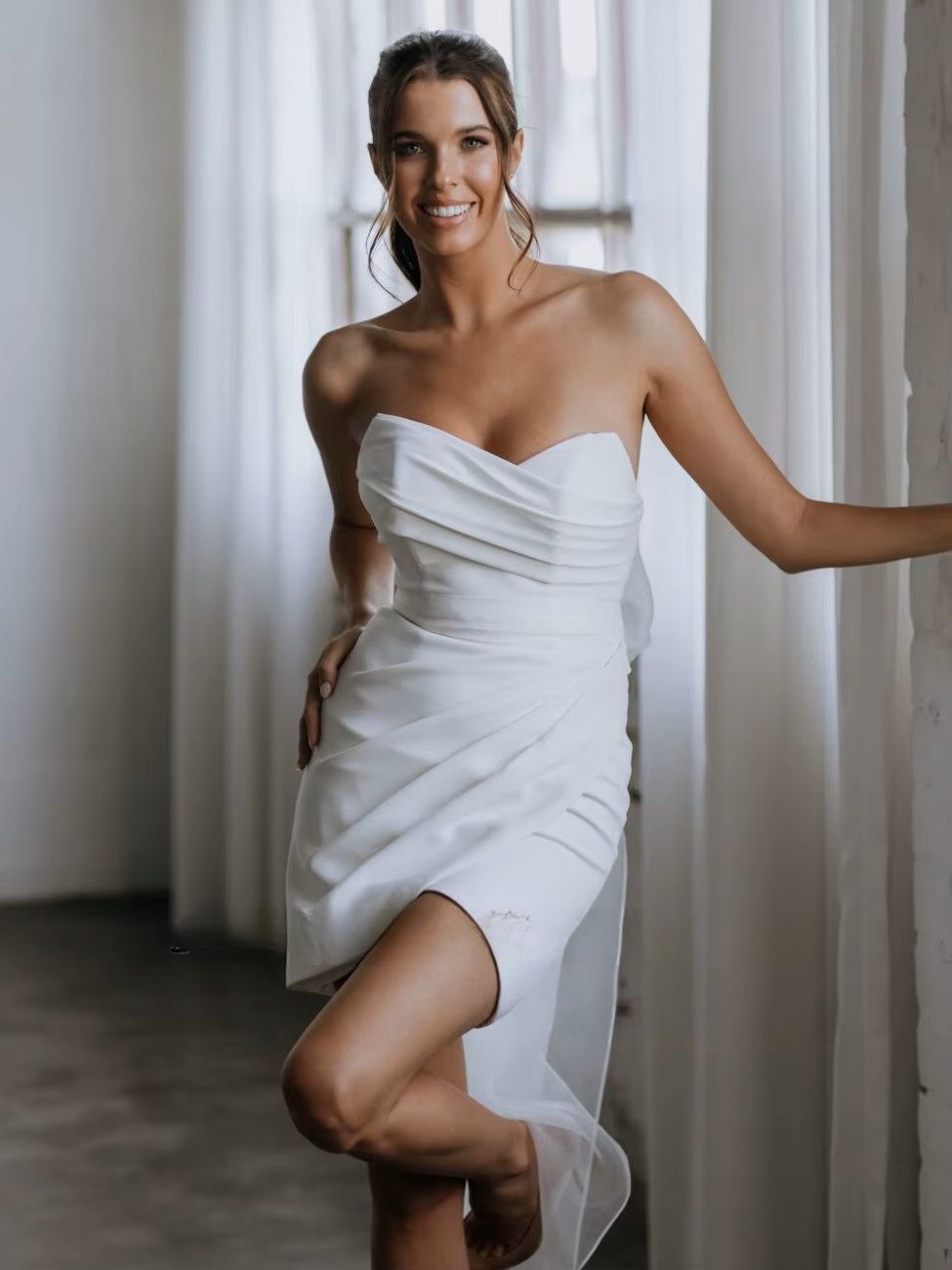 SoDigne Short Mermaid Satin Wedding Dresses Sweetheart Sleeveless Bridal Dress Beach Wedding Gown with Bow 2025 customized